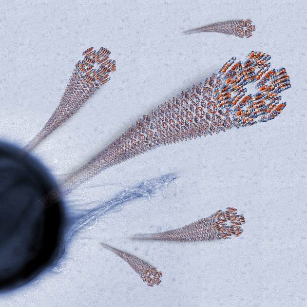 חוקרי הטכניון, פרופ' מיטל לנדאו והדוקטורנט יצחק אנגלברג מהפקולטה לביולוגיה, התמקדו במחקר הנוכחי בנגזרת פעילה של הפפטיד האנטי-מיקרוביאליLL-37 (17-29) הנמצא בגוף האדם ומסייע לו להיאבק בחיידקים שונים. במחקר, שנערך בטכניון ובמאיצי חלקיקים באירופה, גילו השניים כי אחד האמצעים המשמשים פפטיד זה בקטילת חיידקים הוא סיב חלבוני ייחודי הניחן ביציבות רבה ובעמידות בחום גבוה. החוקרים מיפו את צורת ההתארגנות העצמית (Self-assembly) של הסיב - מבנה ארוך, דמוי סרט, המפגין יציבות רבה בתנאים עוינים והיצמדות לתאי חיידקים המאפשרת לו לתקוף את החיידקים מטווח אפס.