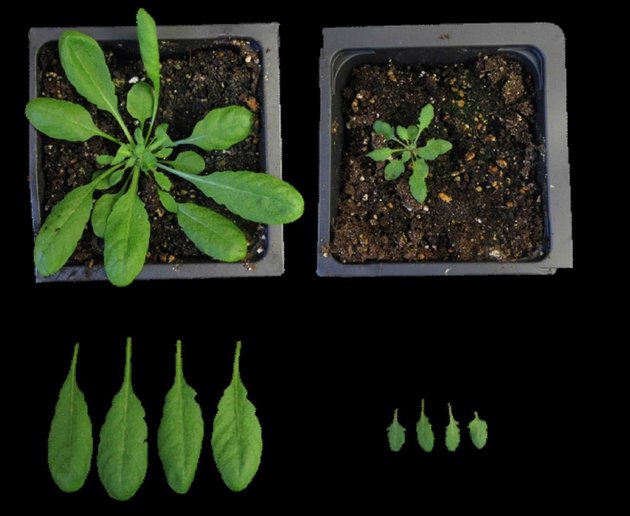 הצמח תודרנית לבנה (אראבידופסיס), לאחר הנדסה גנטית (מימין) שבמהלכה הוחדרו אליו 11 גנים המעורבים בהפקת כולסטרול, מייצר כולסטרול בכמות גדולה פי 15 מאשר תודרנית לבנה רגילה (משמאל(