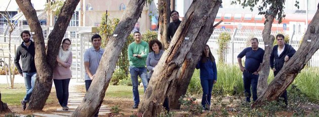 מימין לשמאל: פרופ'' אסף אהרוני, ד"ר סרגיי מליצקי, ד"ר שגית מאיר, סייאנטה פנדה, ד"ר אילנה רוגצ''ב, חסן מסאלחה, ד"ר פראשנט סונאוואן, אפרת אמלקיס זיגל וד"ר ג''דרזג'' סזימנסקי